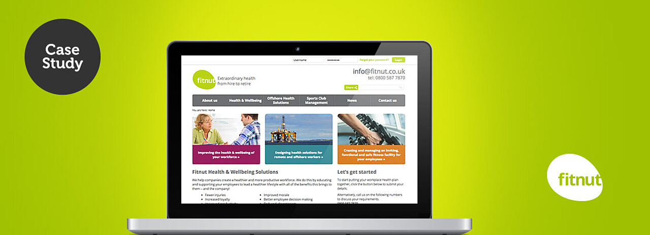 Wisetiger has worked with Fitnut for several years and most recently was appointed to refresh their website, incorporating their new logo and branding. The design brief was to portray a professional image, to appeal to a corporate audience and to communicate their business objectives.