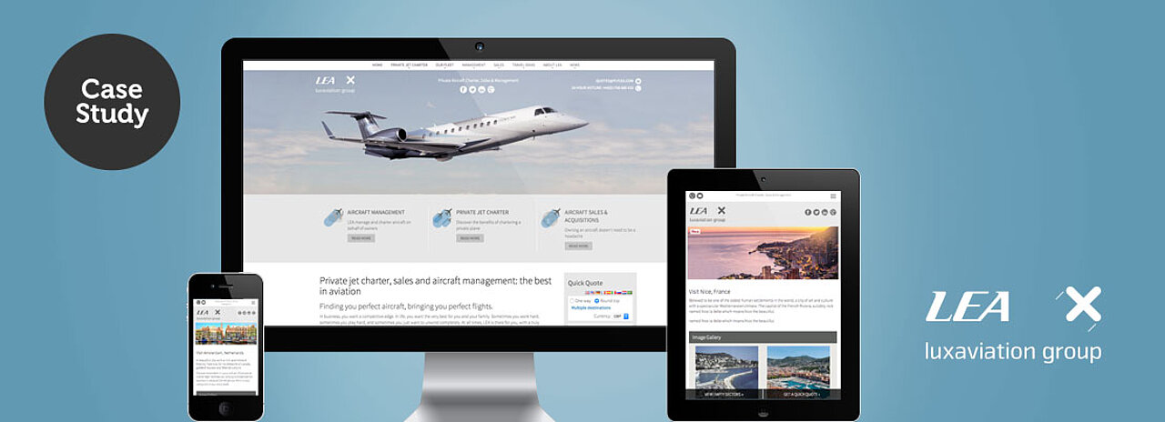 LEA’s digital marketing requirements include their responsive website, Content Marketing including SEO and social media integration. Importantly, the website integrates with an online air charter booking system and also displays a live stream of ‘empty sectors’ – where bookings for empty flights are marketed and converted to save LEA from flying empty jets that have only been used for a one way trip.