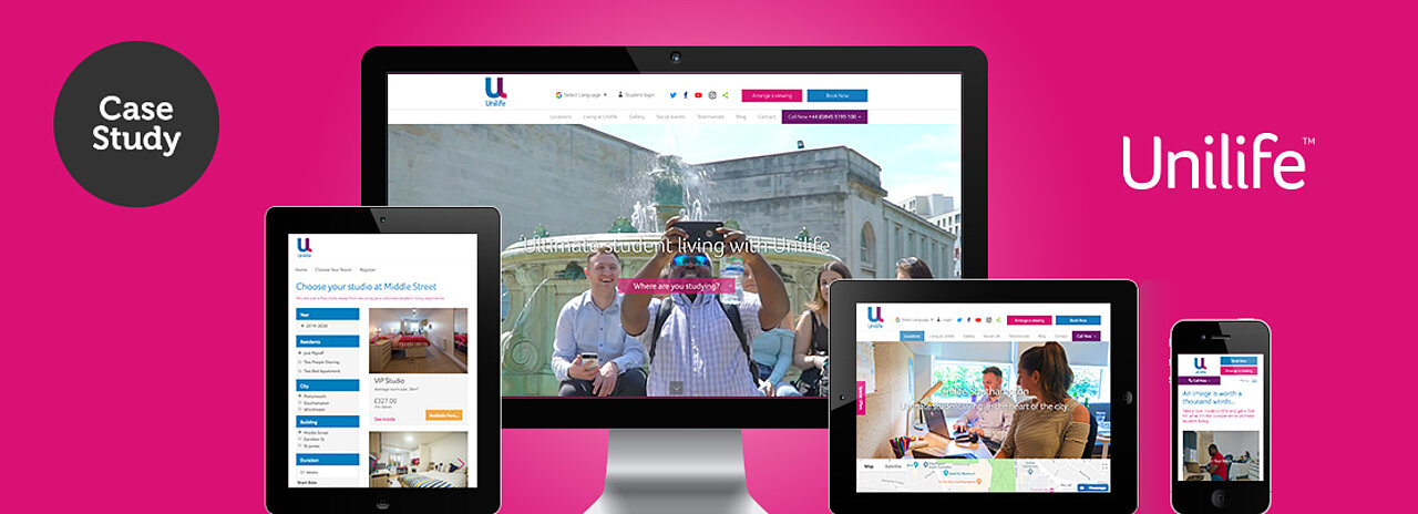 The new website focuses on the student experience to help Unilife stand out from their competitors. This is a differentiator for Unilife and the site makes the best use of video, written content, photography and social media to support their brand narrative.